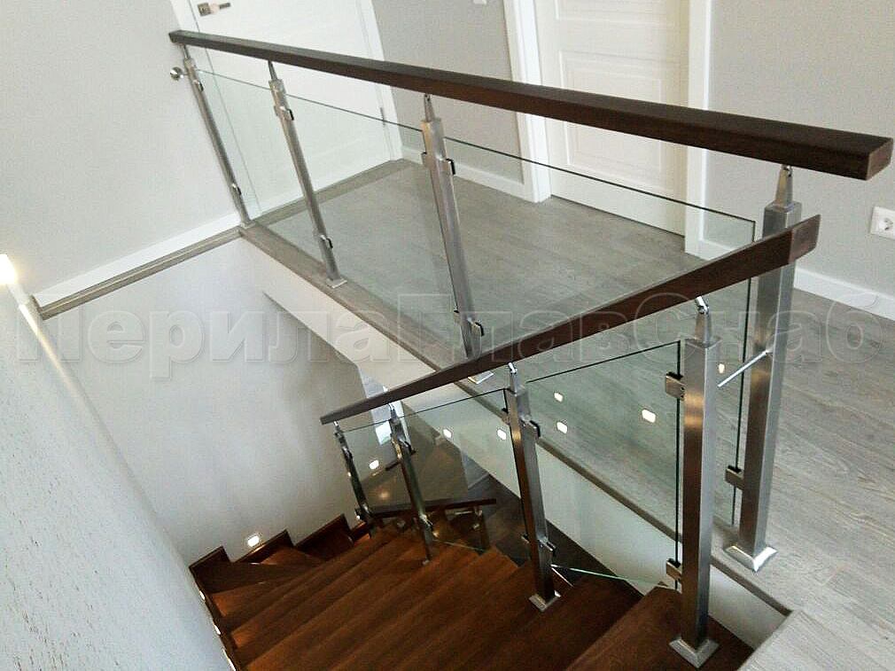 - Лучшая конфигурация для дома: квадратные деревянные стойки, квадратный деревянный поручень, заполнение из каленого стекла 8мм.