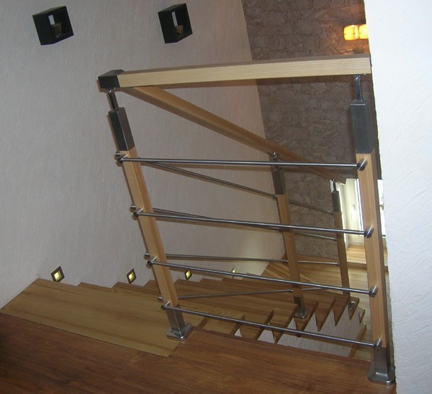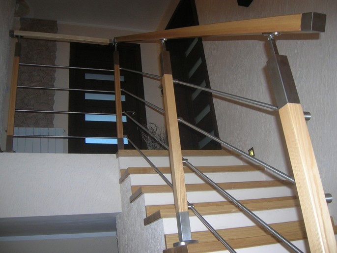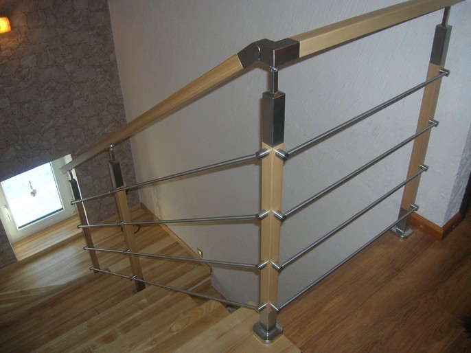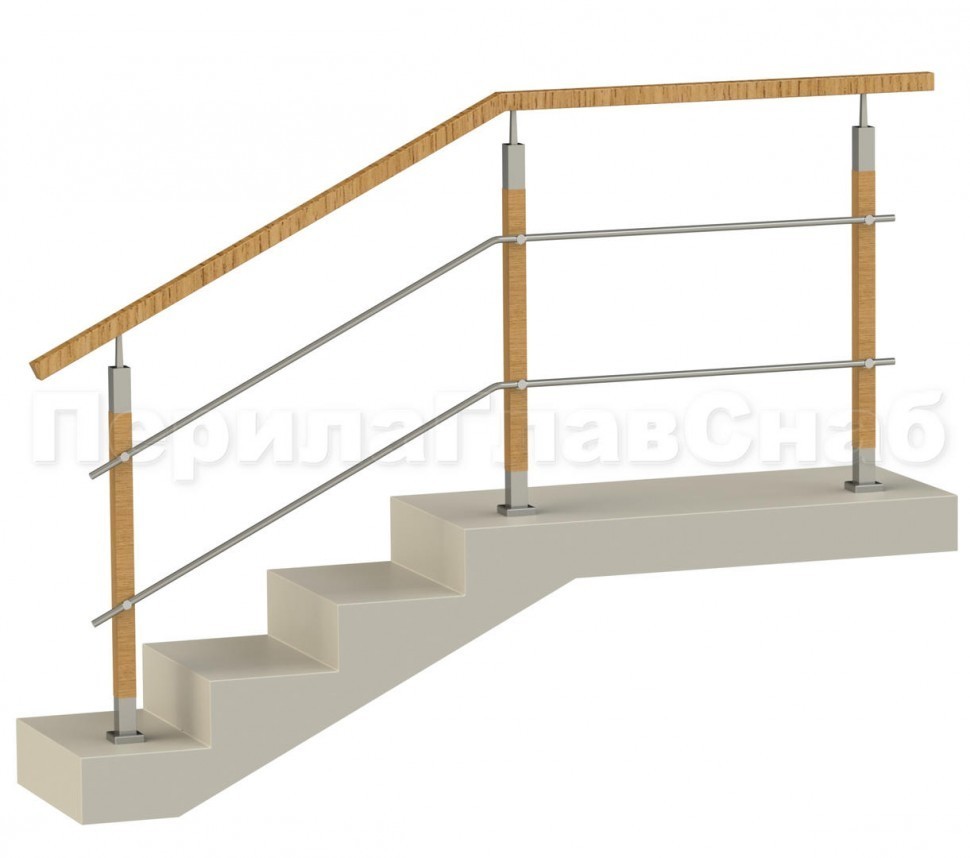 - Два ригеля на держателях, квадратный деревянный поручень и квадратные деревянные стойки