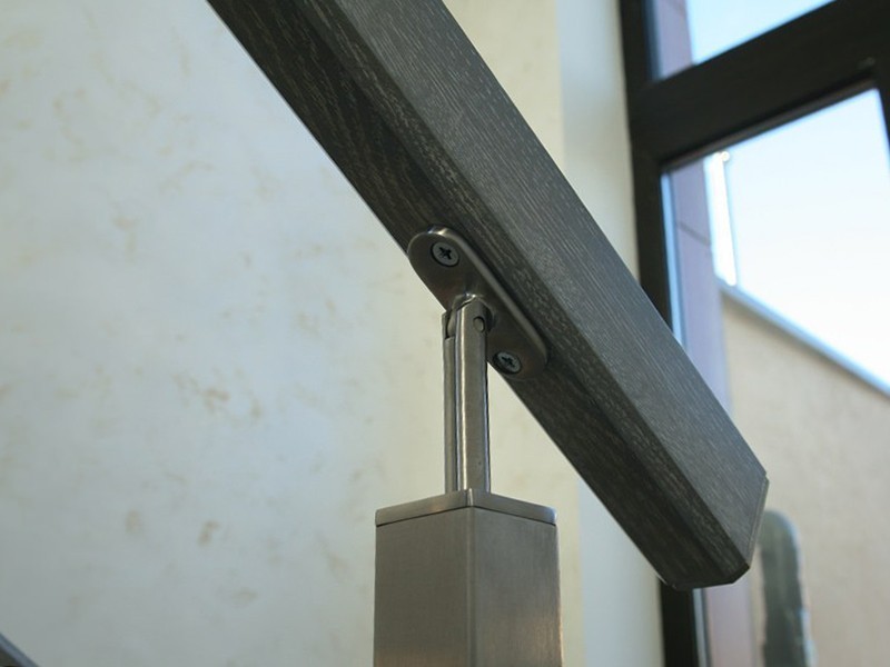 Записаться на встречу Два ригеля на держателях, квадратный деревянный поручень и квадратные деревянные стойки