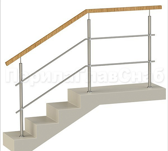 Записаться на встречу Два ригеля на держателях, квадратный деревянный поручень и круглые стойки