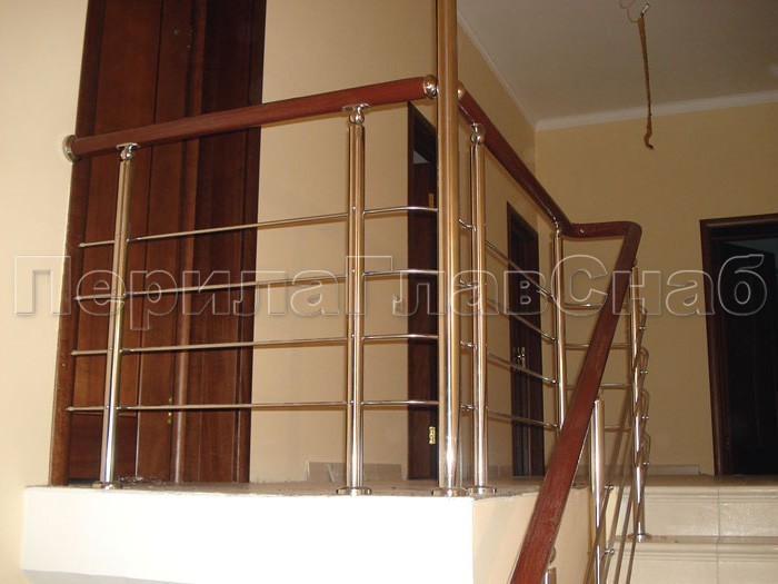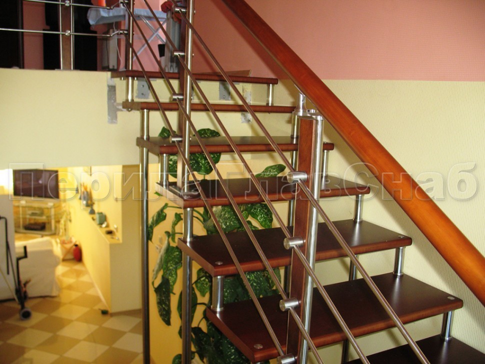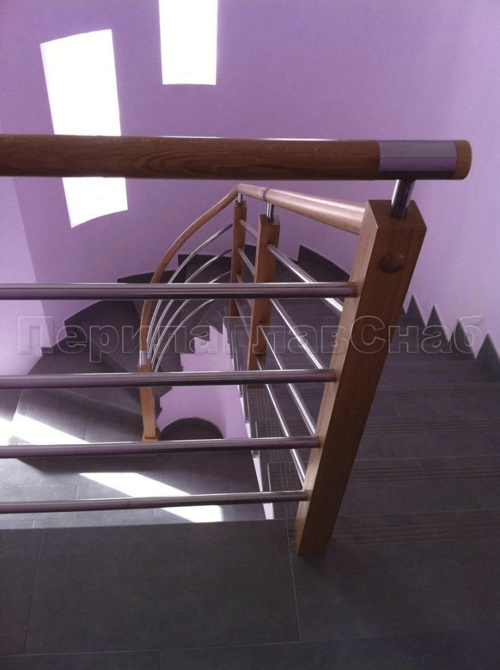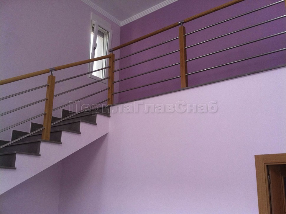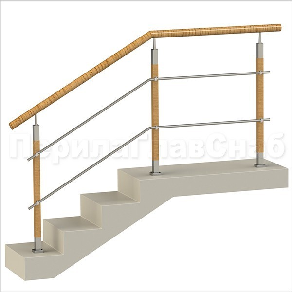 Записаться на встречу Два ригеля на держателях, пластиковый поручень и квадратные деревянные стойки