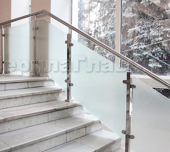 В таких ограждающих устройствах на окна используется каленое стекло 8-10мм. Стекло в оконных ограждениях может быть прозрачным, матовым или цветным. Очень красиво смотрится стекло под бронзу. Установка оконных стеклянных межэтажных ограждений осуществляется очень быстро, с использованием нами технологии чистый монтаж.