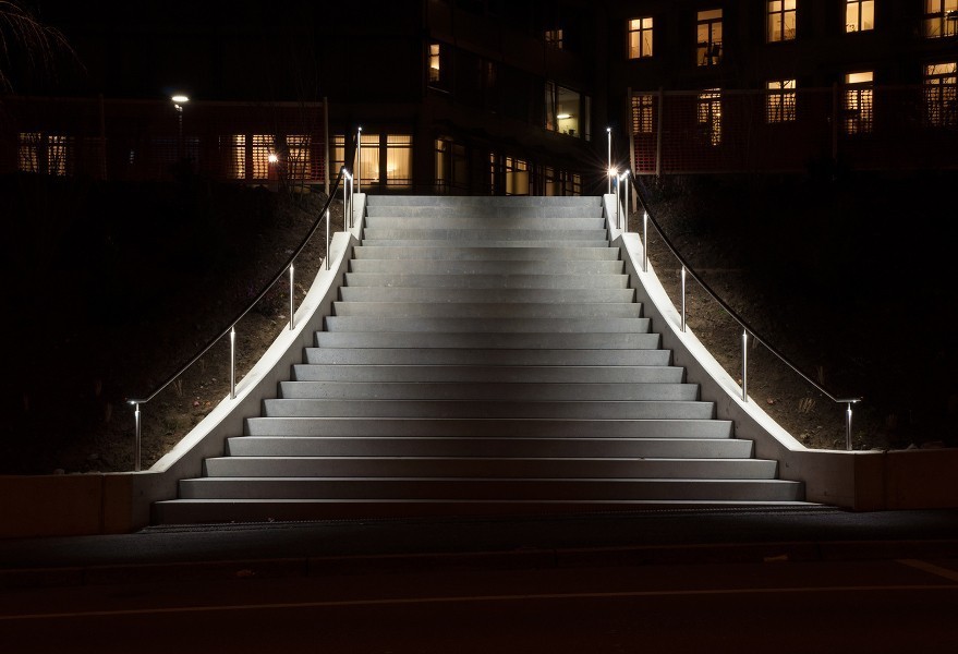 Наиболее эффектно смотрится одновременно два вида подсветки: подсветка поручня и подсветка стоек.