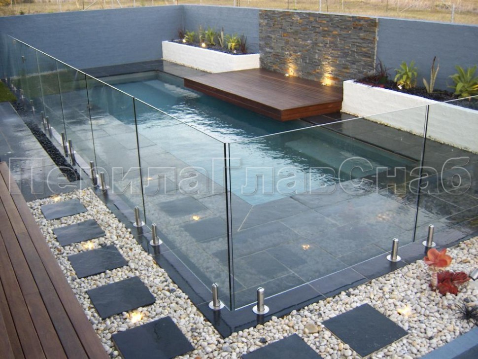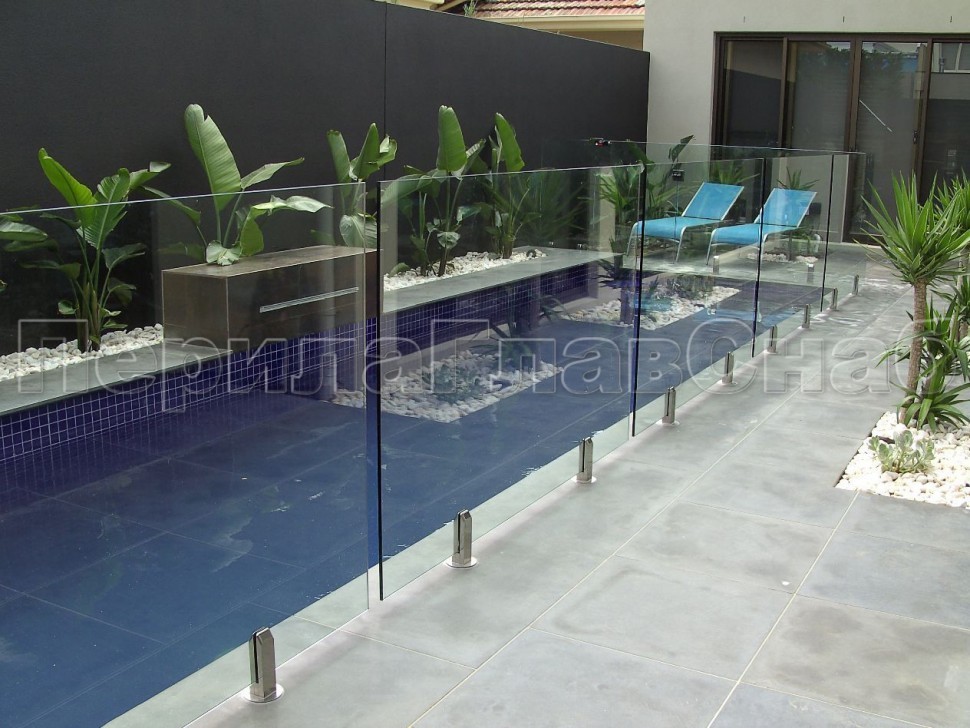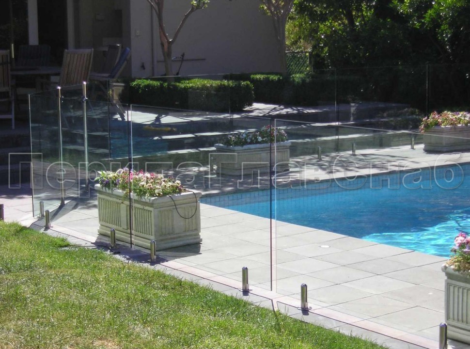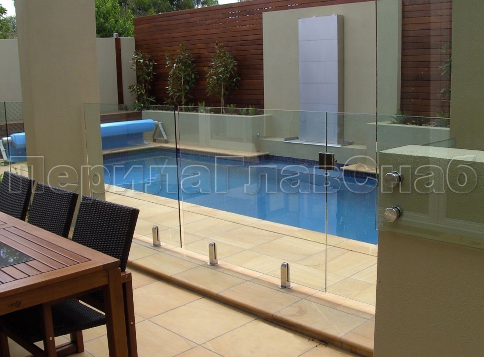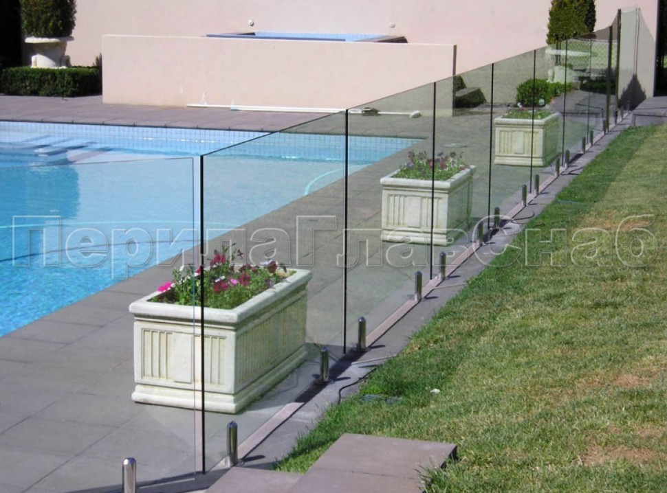 Ветрозащитное ограждение без стоек, на точечном креплении в торец