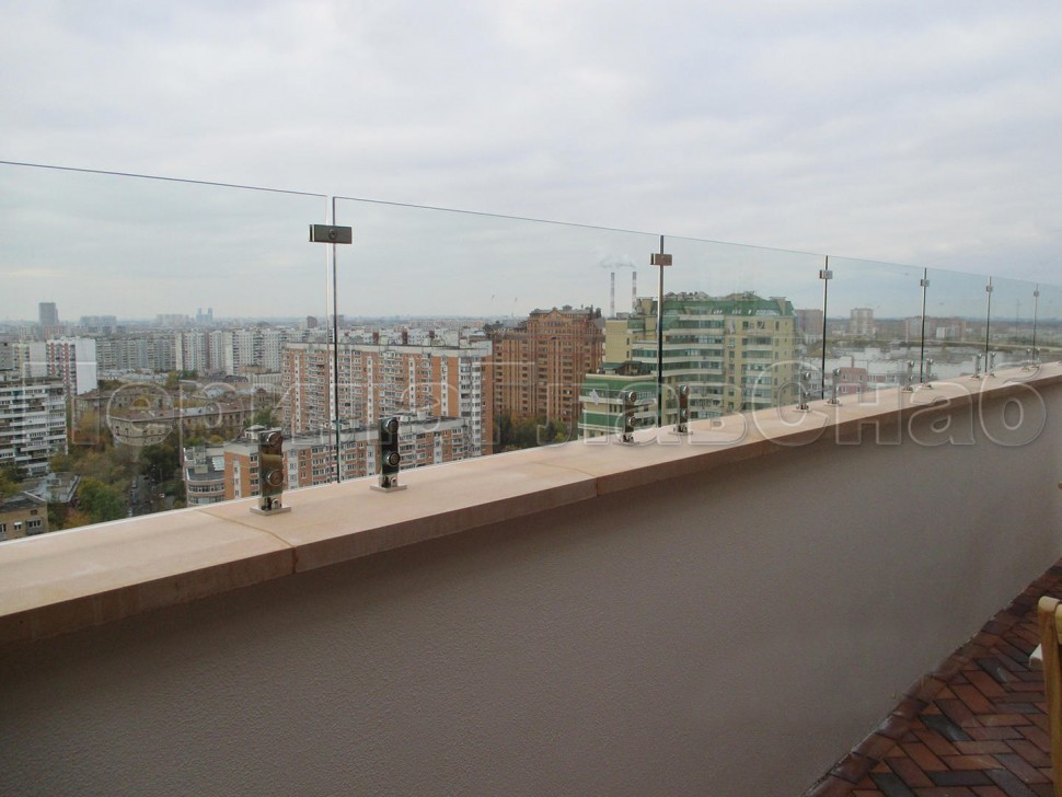 Несущая функция перераспределена между стеклом и стойками крепления. Высота ограждения может быть разной, в зависимости от высотности здания и наличия парапета (и его высоты).