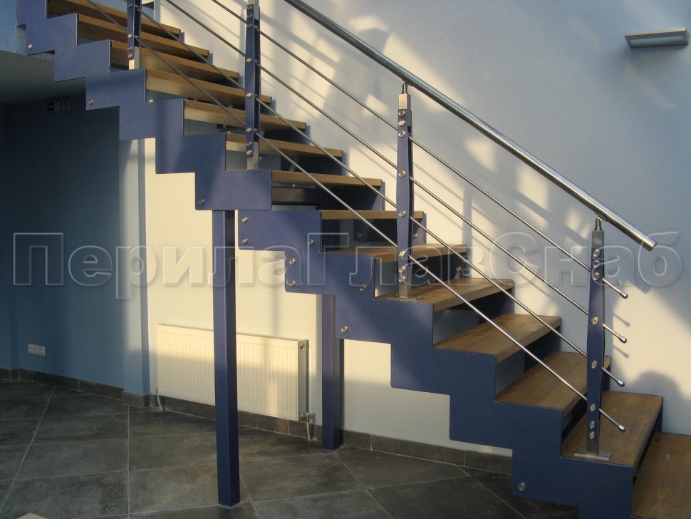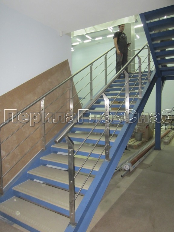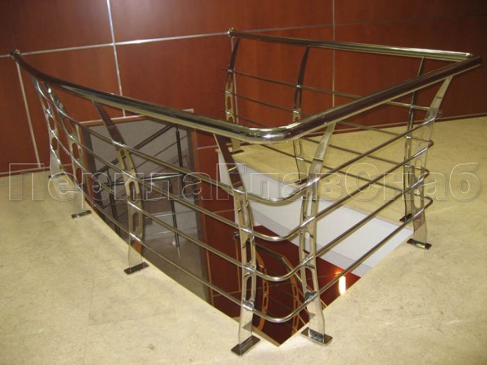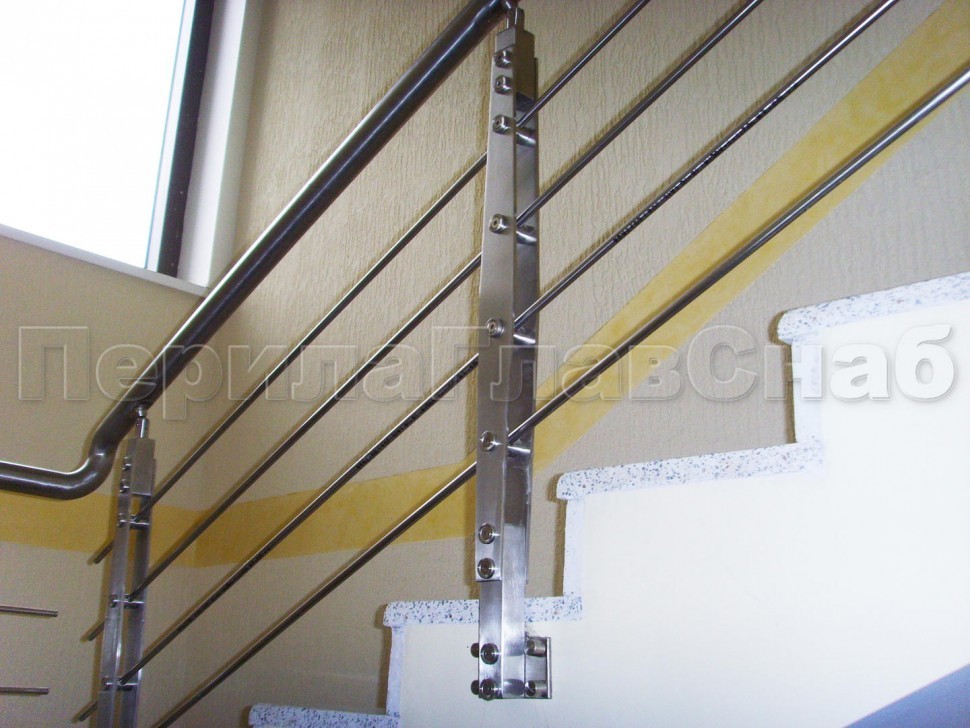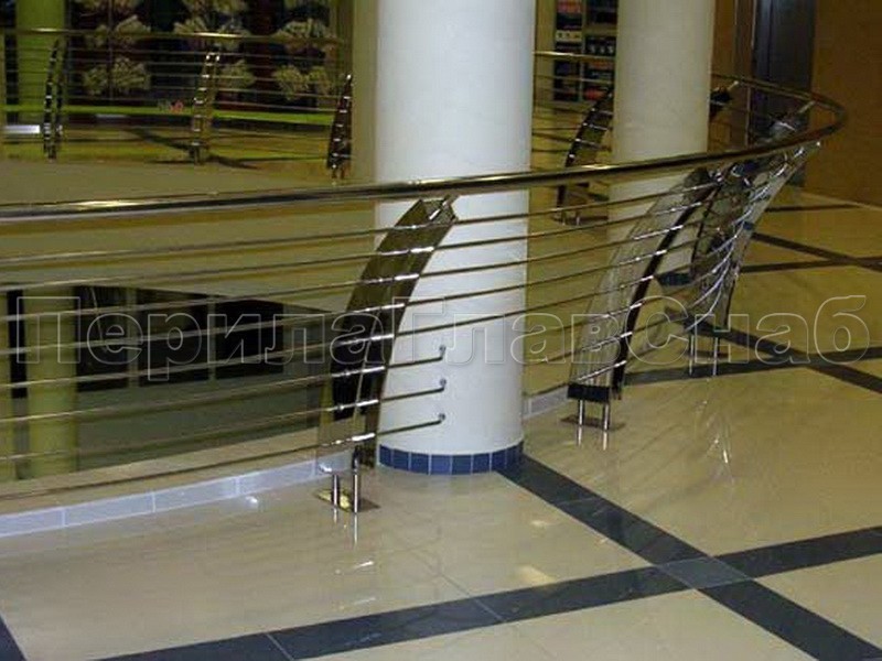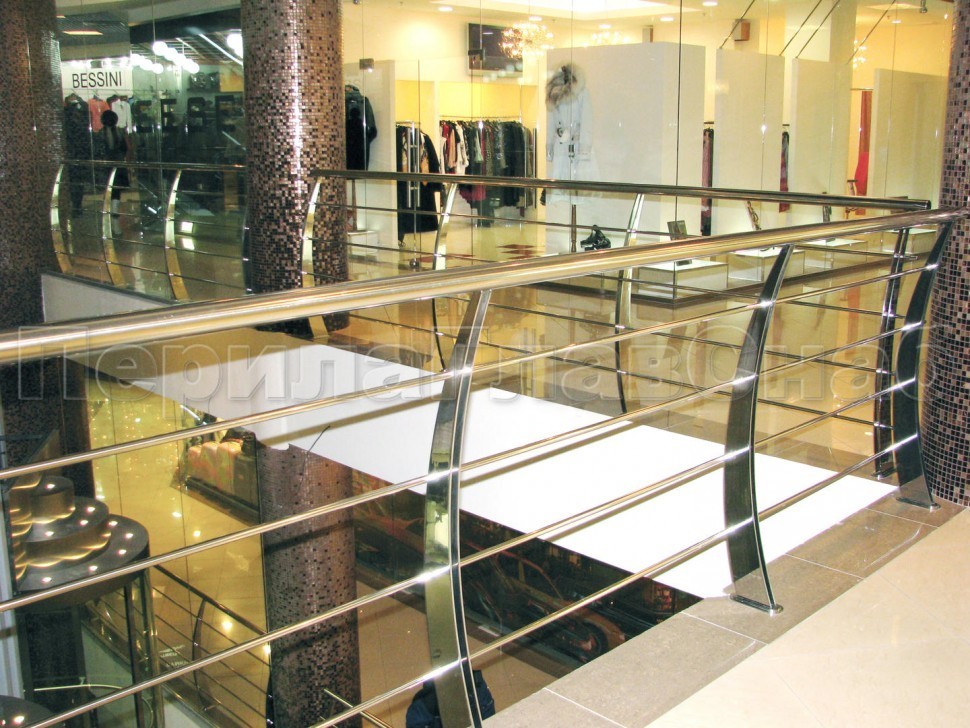 - Ограждение с нестандартными нержавеющими стойками и ригельным заполнением