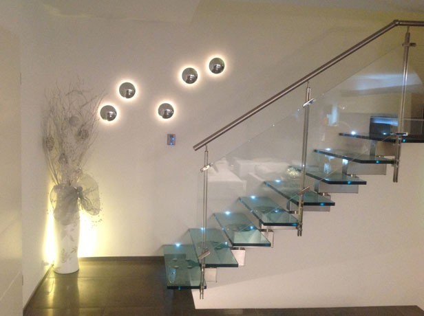 Записаться на встречу Ограждения со стеклом и подсветкой поручня