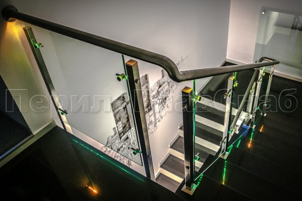 - Ограждение со светильниками, встроенными в поручень