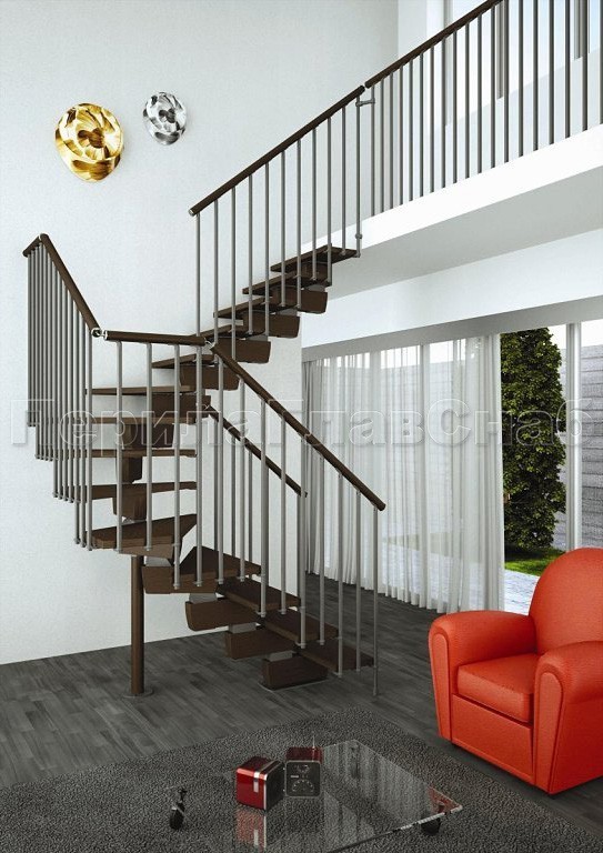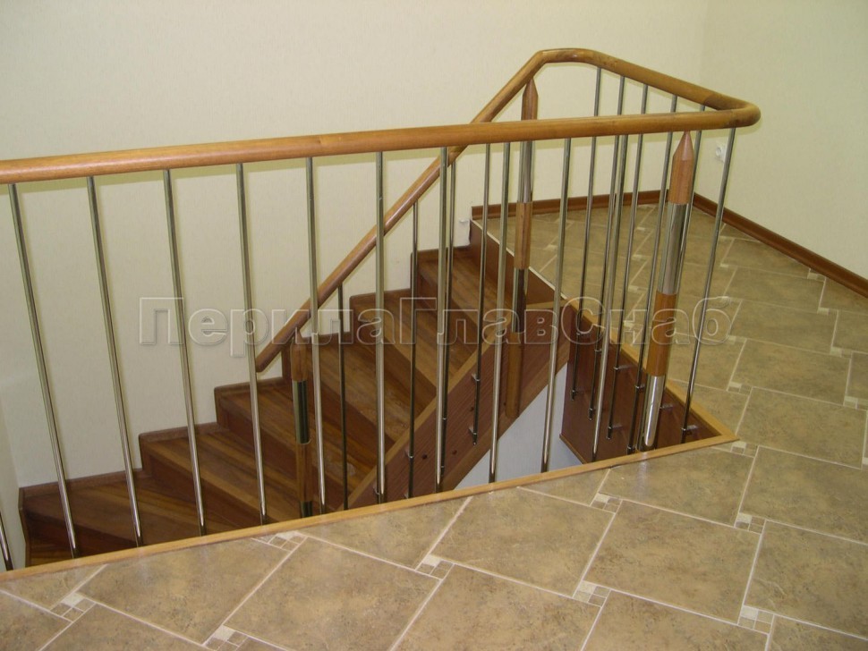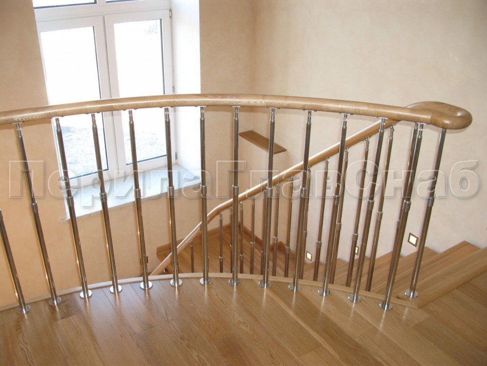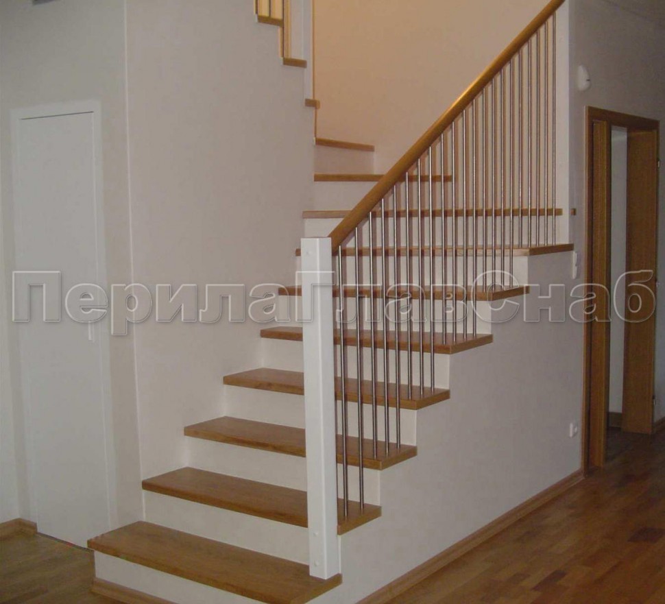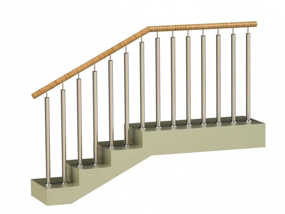 - Ограждения с двумя стойками в каждую ступень с пластиковым поручнем и без ригелей