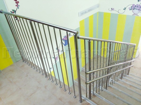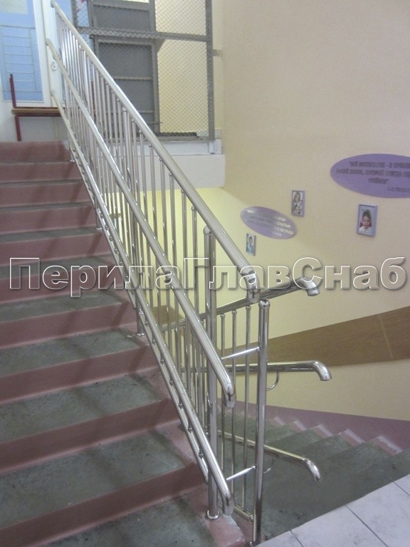 Ограждения для детского сада и перила для школ оснащают двойными или тройными поручнями. Это необходимо для того, чтобы спуск был удобен для всех. Особое внимание обращают на толщину поручня – она не должна быть больше 40 мм в диаметре.