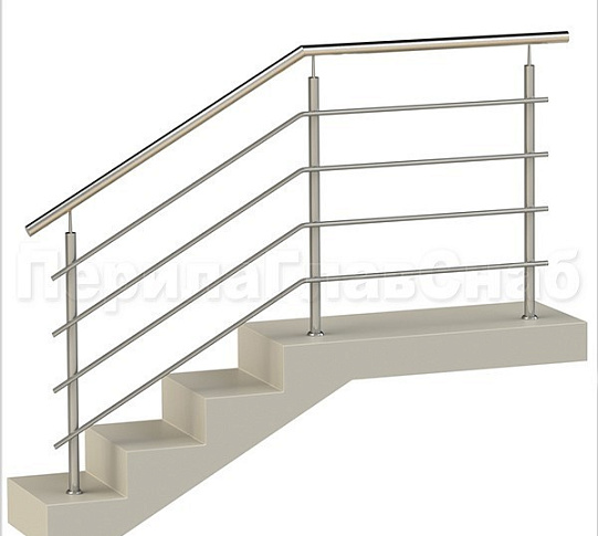 - Четыре ригеля на сварке, круглый поручень и круглые стойки для крыльца