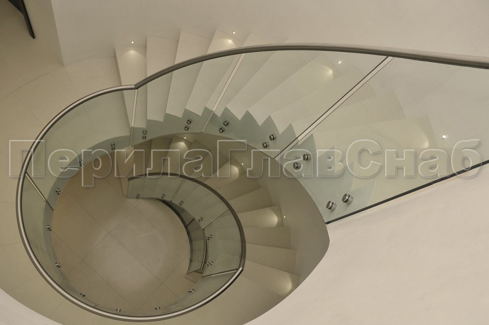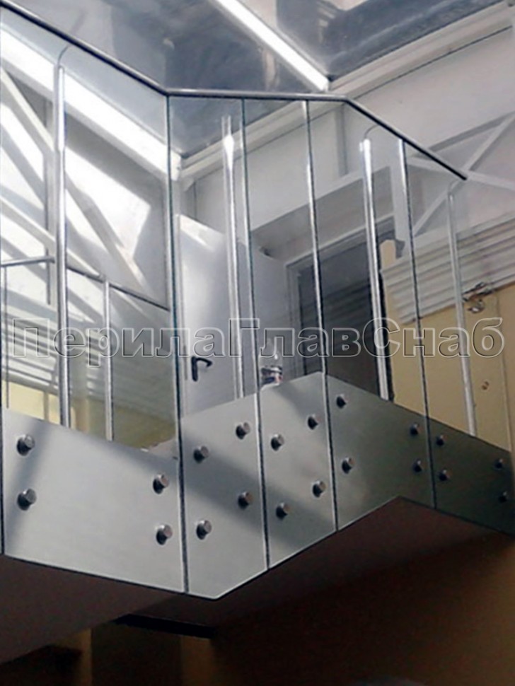 Записаться на встречу Ограждение с профильным поручнем с пазом на точечном креплении на лестнице