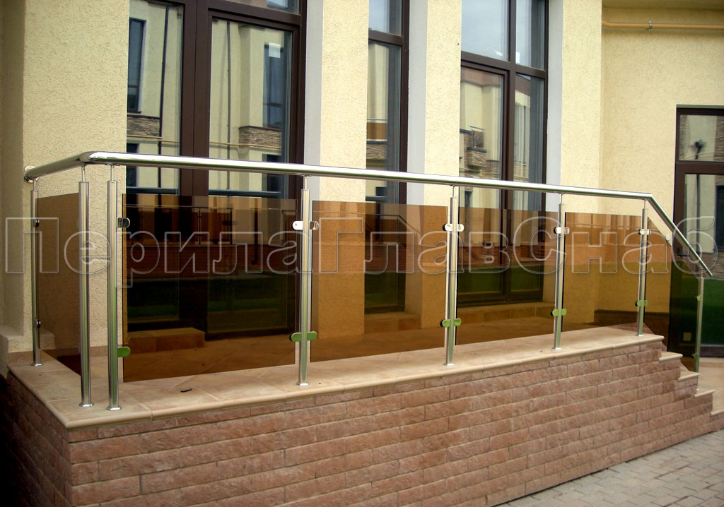 Ограждения из нержавейки со стеклом без поручней также очень популярны. Чаще всего их предпочитают для оборудования открытых площадок кафе, балконов, террас загородных домов.