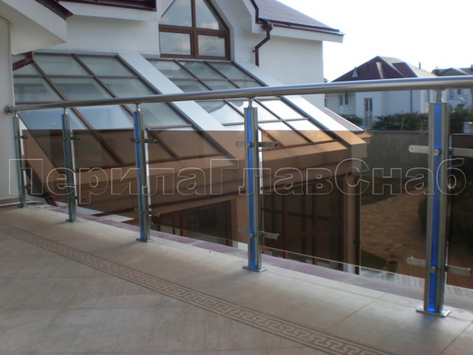 - Ограждение со стойками с акриловыми вставками на спайдерных стеклодержателях