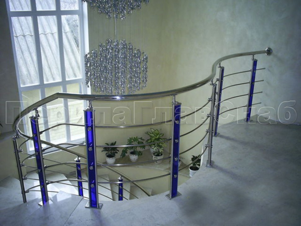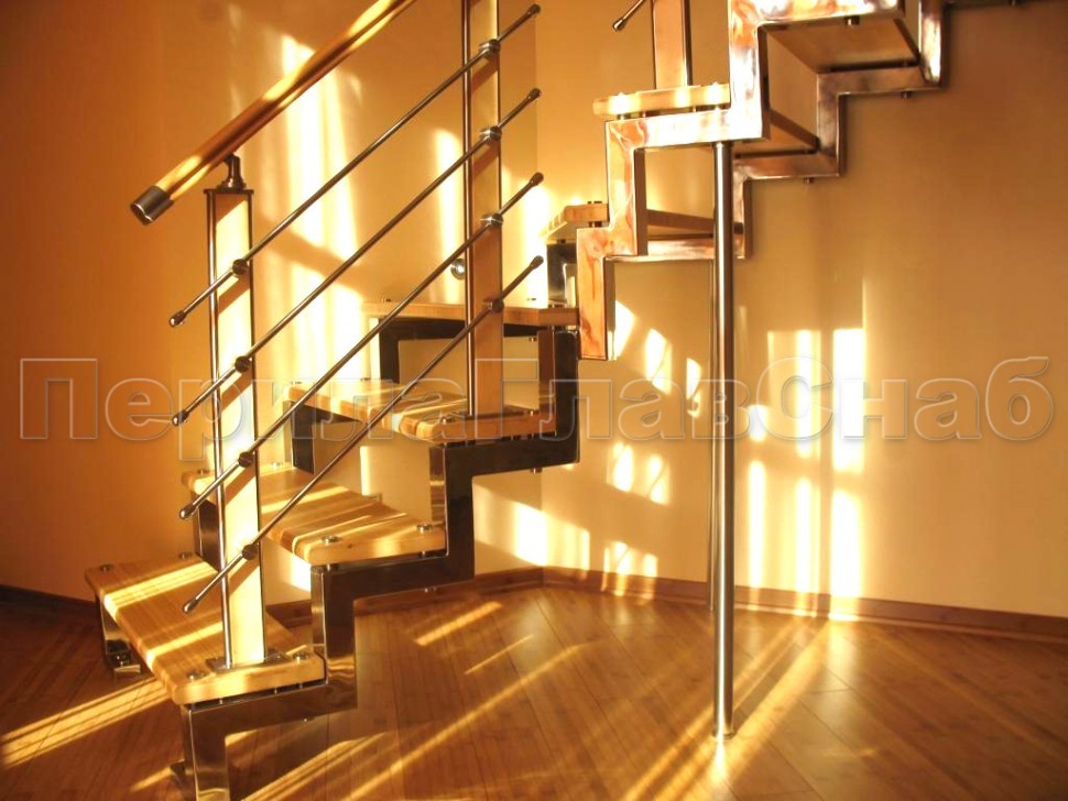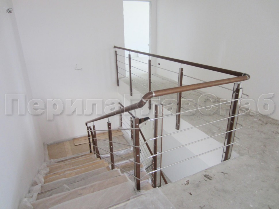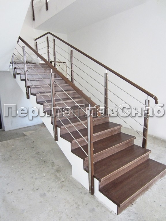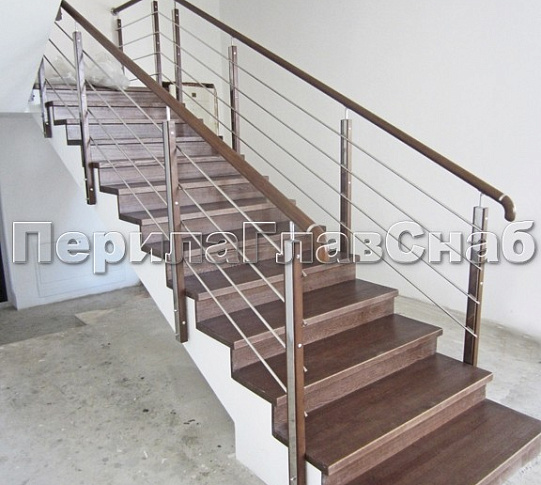 - Ограждение со стойками из шлифованной нержавеющей стали с боковым крепежом, со вставками из дерева