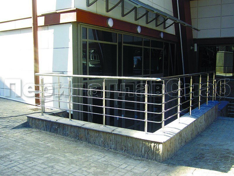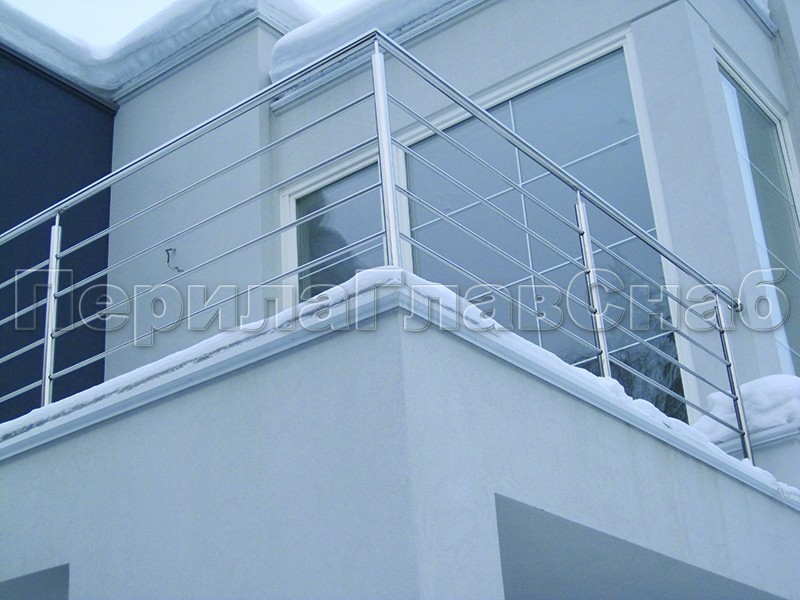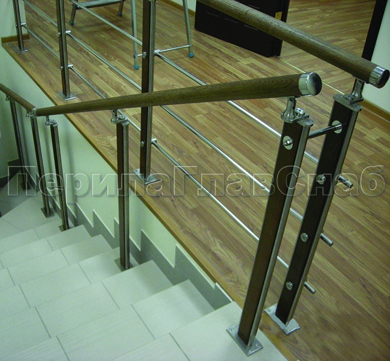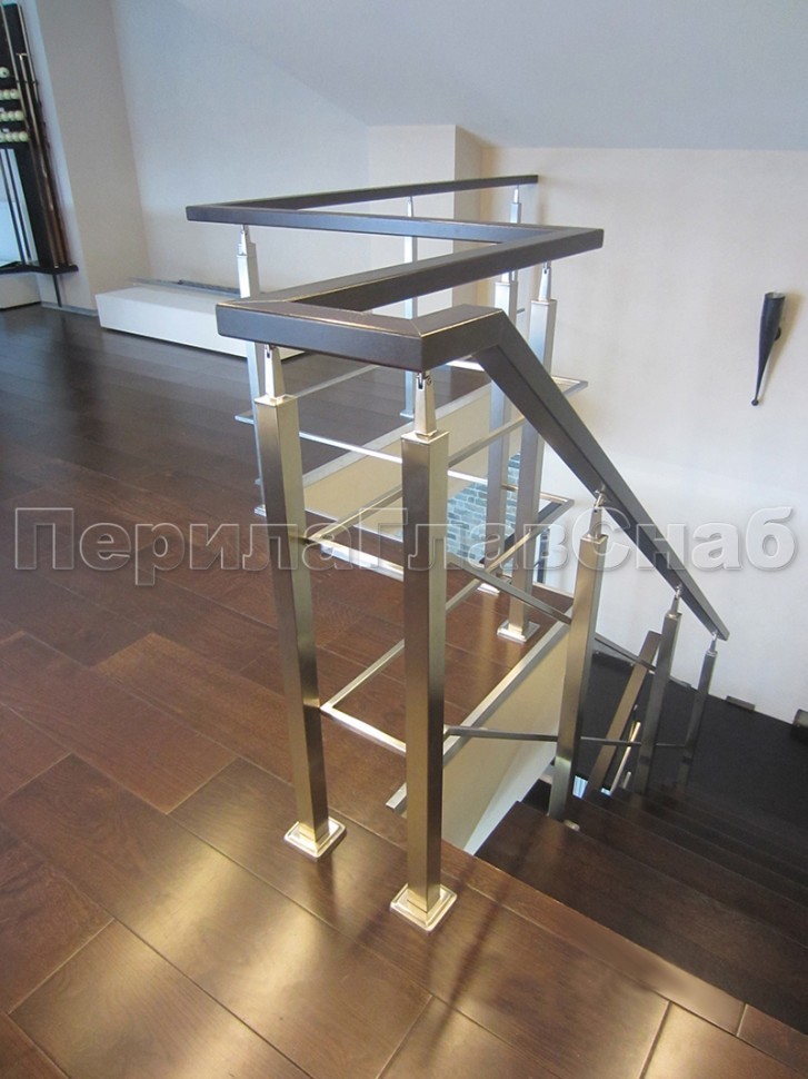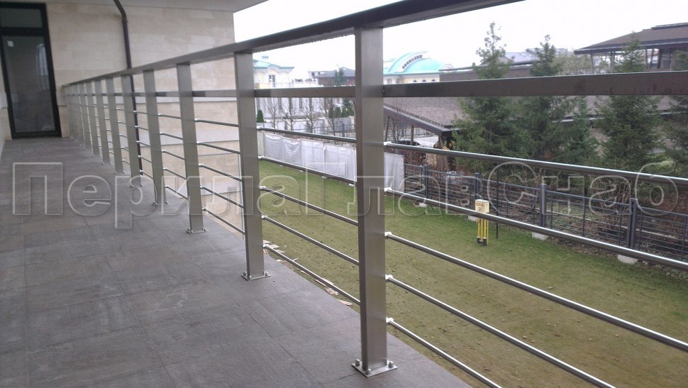 - Четыре ригеля на держателях, квадратный поручень и квадратные стойки