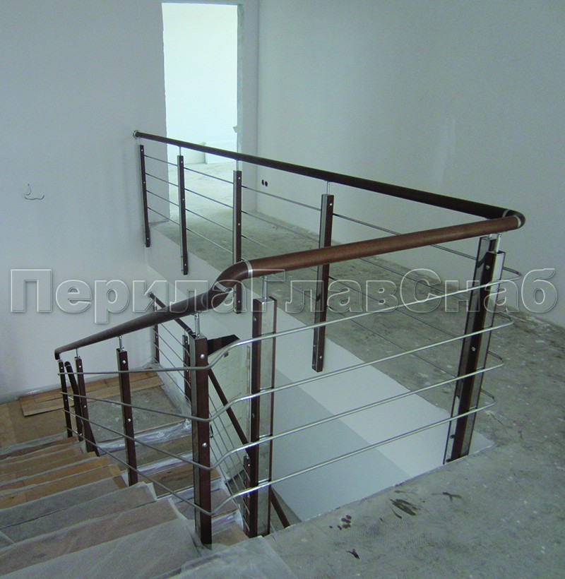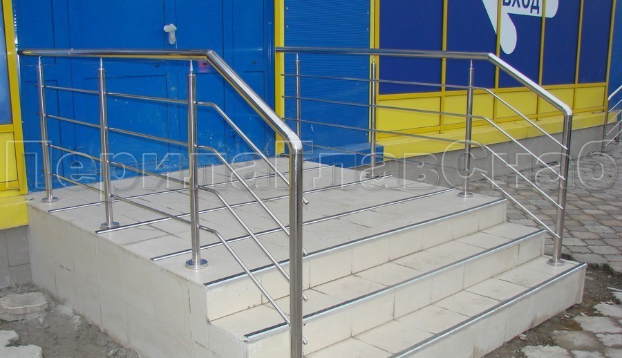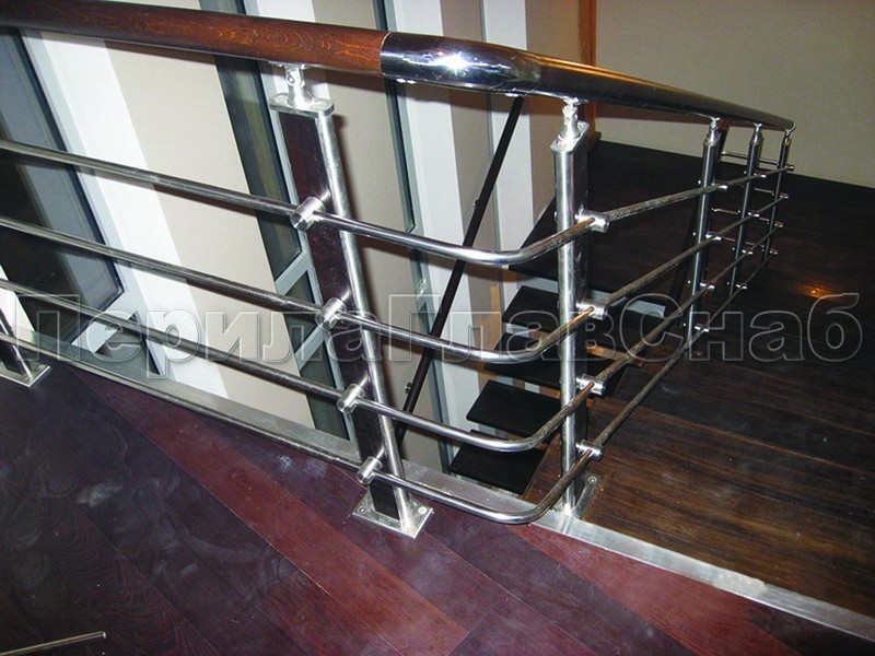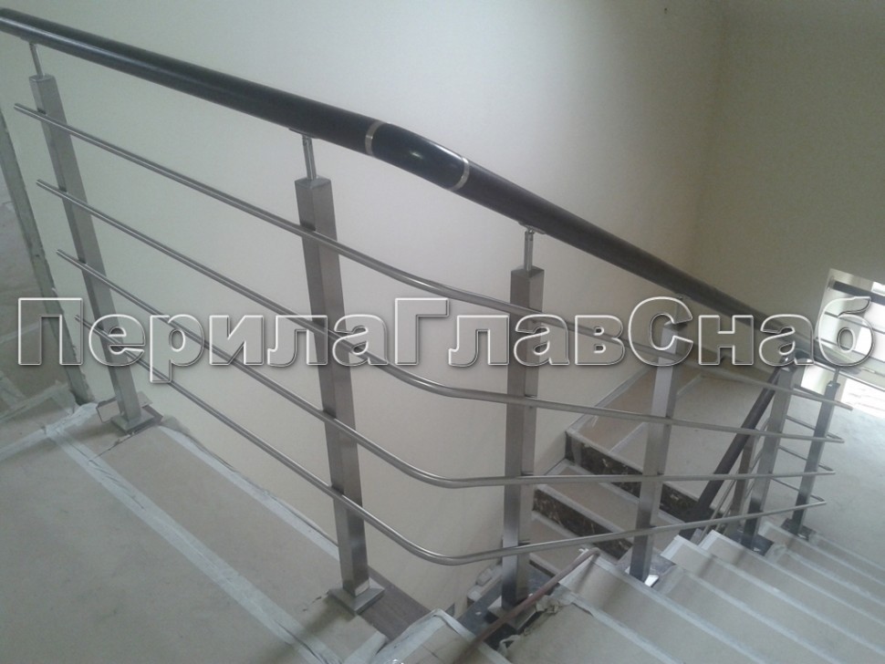 - Четыре ригеля на сварке, круглый поручень и квадратные стойки