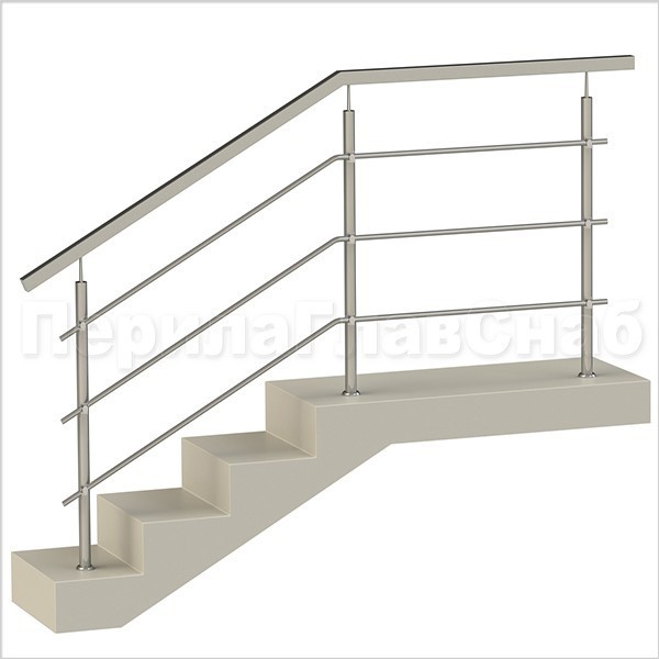 - Три ригеля на держателях, квадратный поручень и круглые стойки