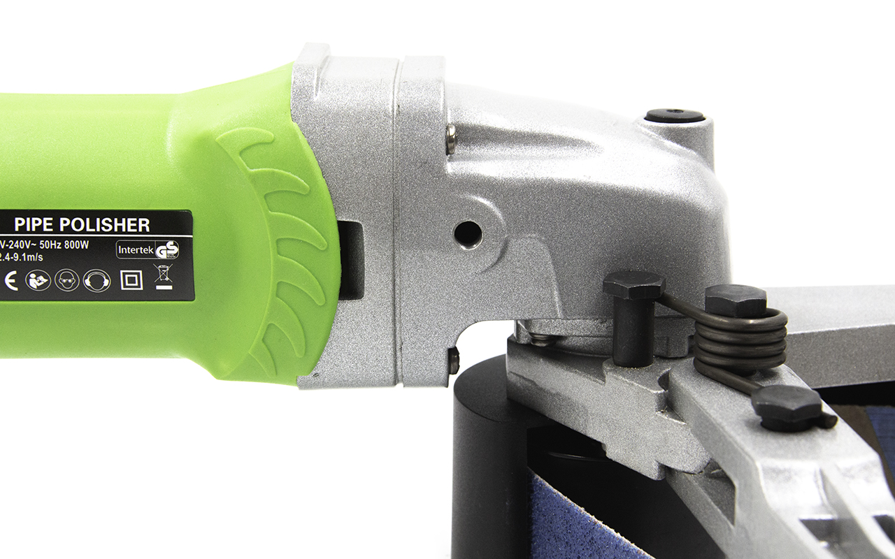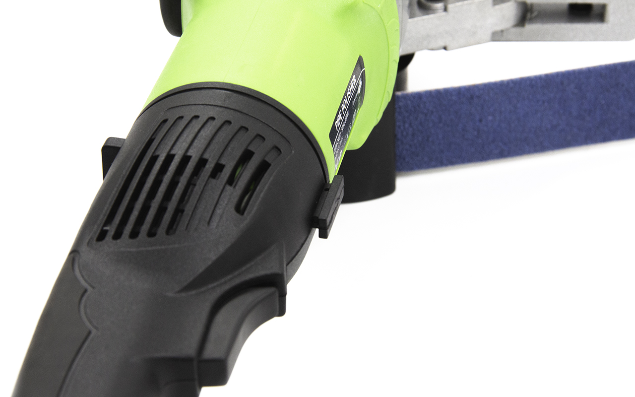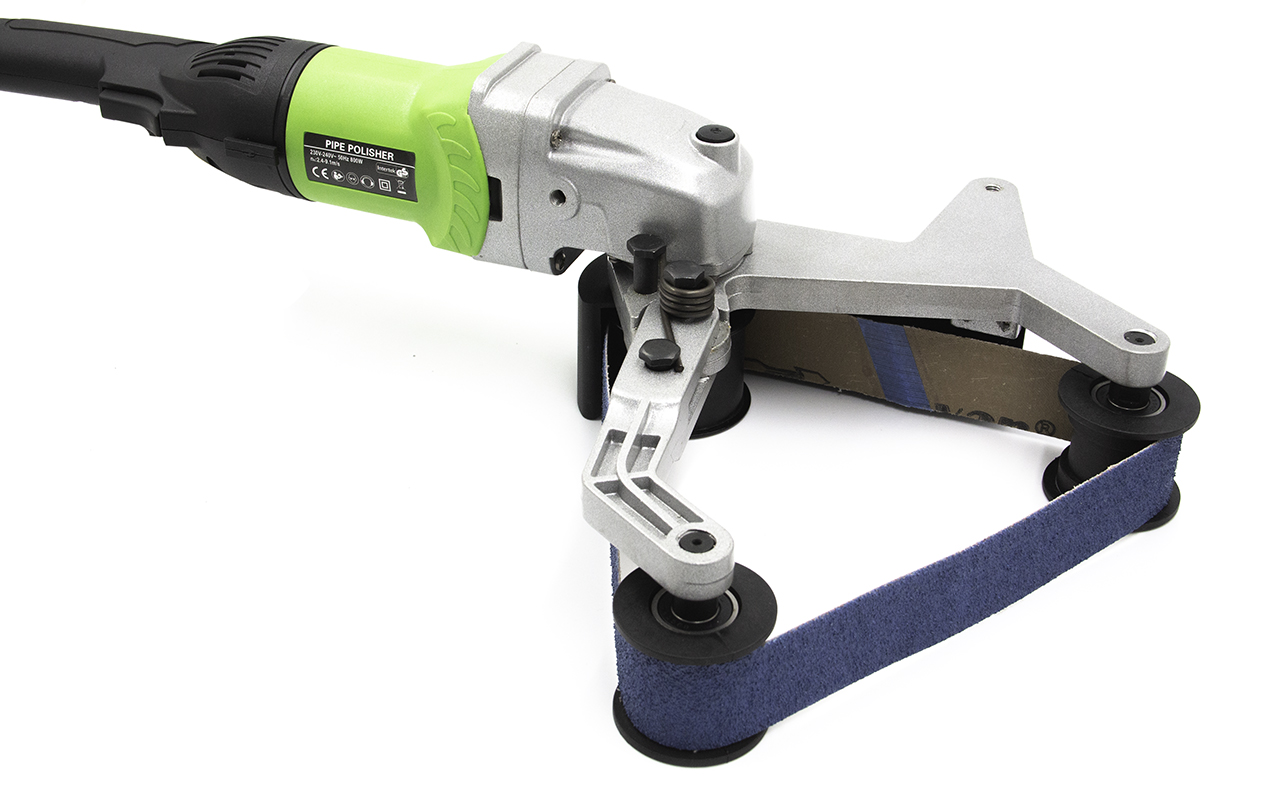 Качественный результат шлифовки достигается в результате большей площади соприкосновения инструмента с трубой. За это отвечает система из трех роликов в подпружиненном лентопротяжном механизме.
