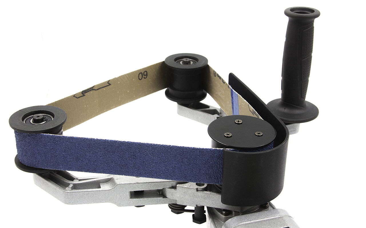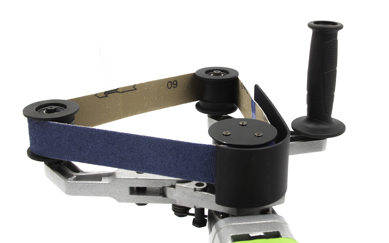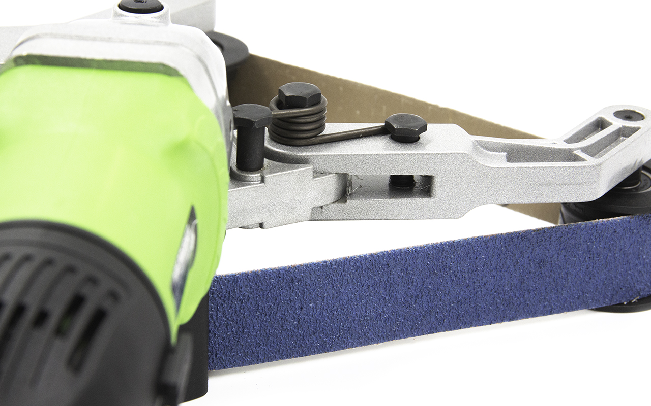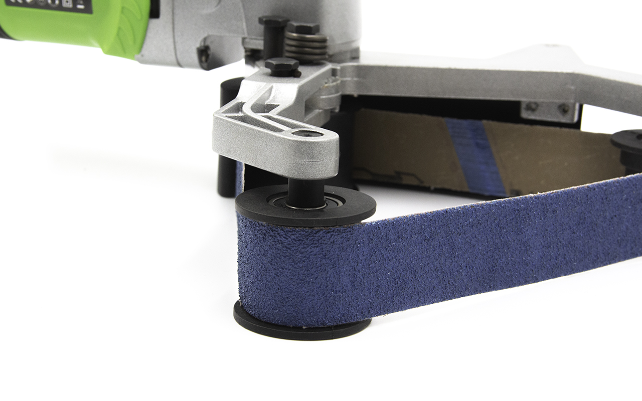 Шлифовальная лента не скользит в процессе работы, ее надежно фиксируют приводные ролики.