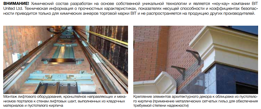 Предназначен BIT-PE для стен из керамического материла, которые в свою очередь могут быть, как в виде кирпича - пустотелые, полнотелые, а также выполнены, как камни или блоки.