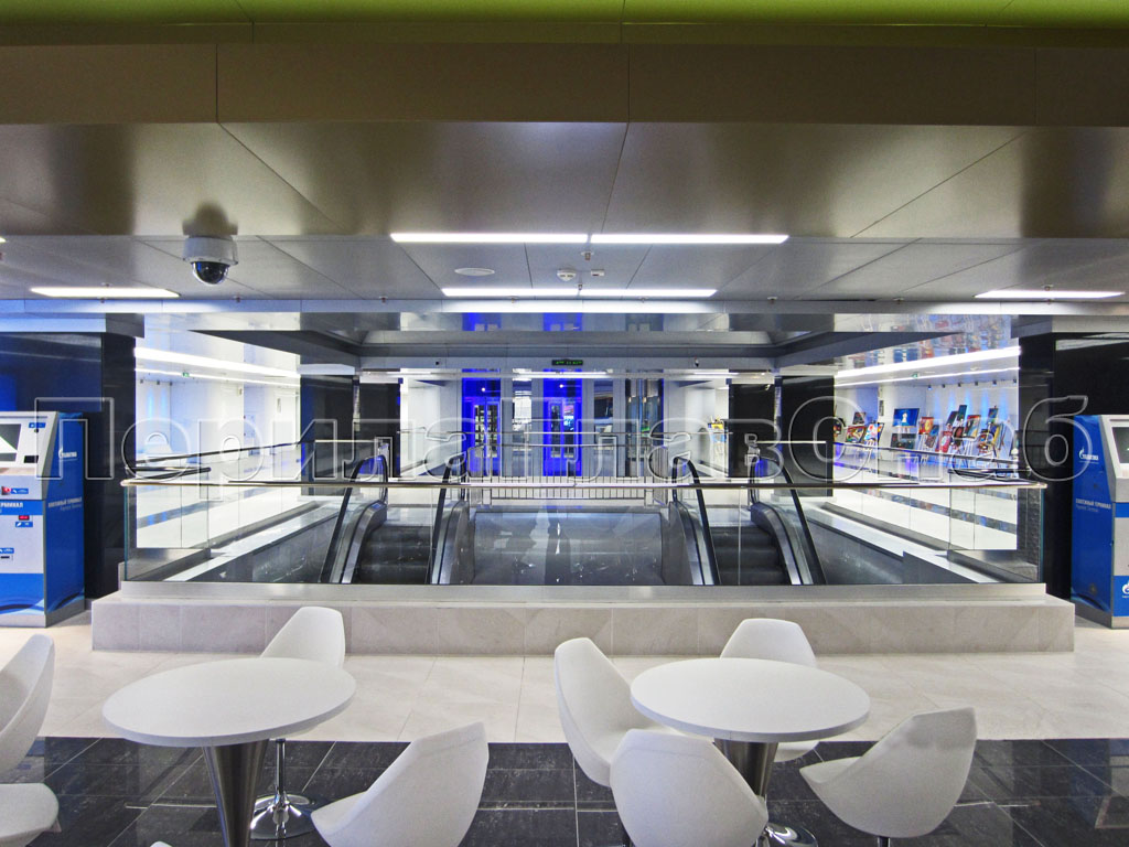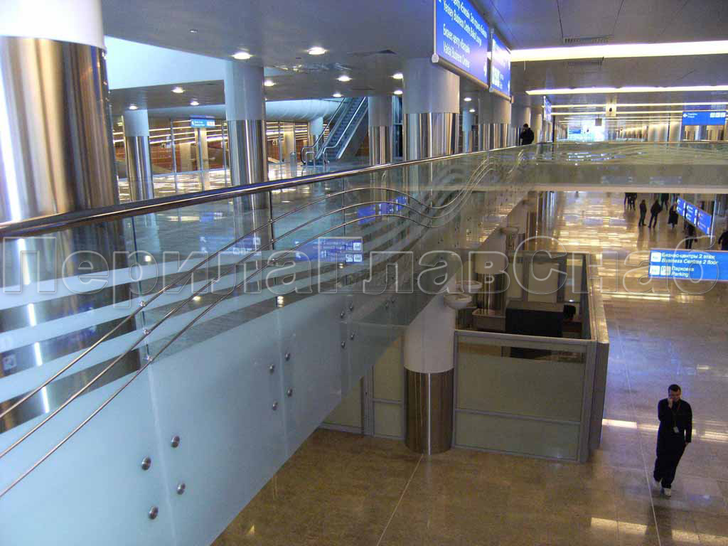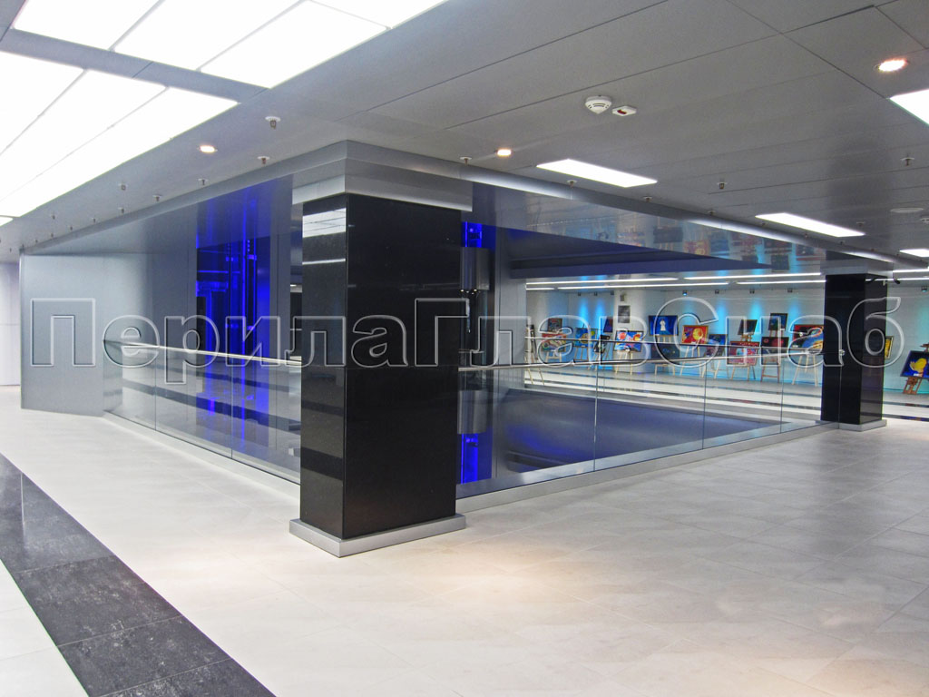 - Безопасность стеклянных ограждений. Площадь перекрытия у атриумов (в Торговых Центрах) очень значительна. Здесь проходит огромное количество посетителей, в том числе детей. Обычно пол покрыт плиткой или иным покрытием, которое моют. Дети могут бегать и даже кататься. Поэтому важно, чтобы никто с разгона или по иной случайности не упал с этажа. Стеклянные перила представляют собой ограждения экранного типа. То есть здесь нет пустот между заполнением и никакой предмет или человек (а уж тем более ребенок), даже на большой скорости, не сможет выпасть.