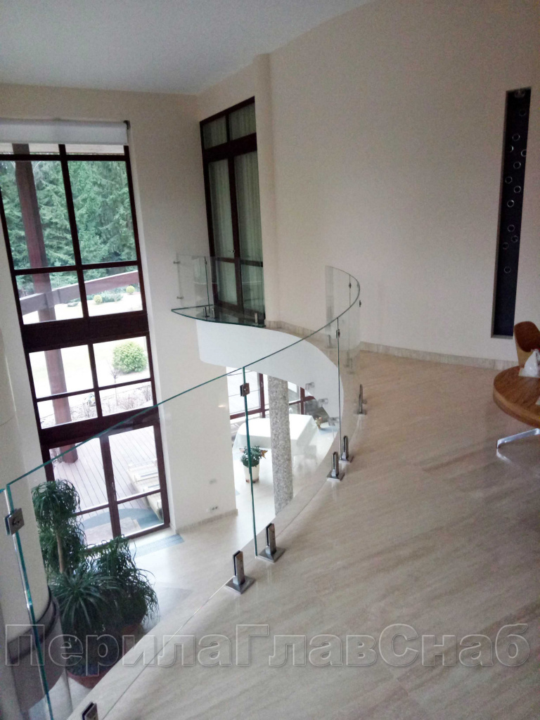 Стеклянные перила атриума в частном загородном доме, Подмосковье.