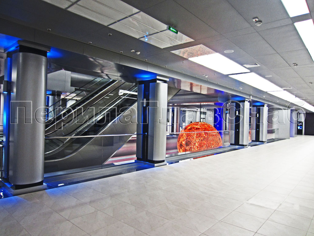 На этом же объекте на перилах для лестниц в качестве поручня установлена труба с пазом с подсветкой.