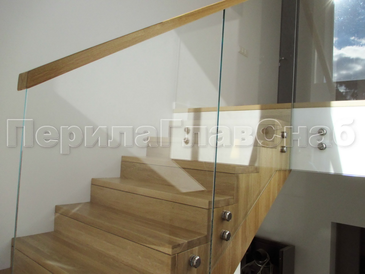 Стеклянные перила для лестничных маршей в подмосковном коттедже.