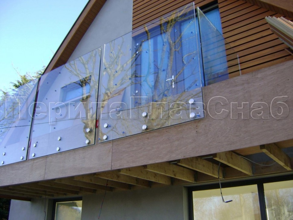 Несущее стекло крепится в торец балконного основания специальными точечными креплениями.