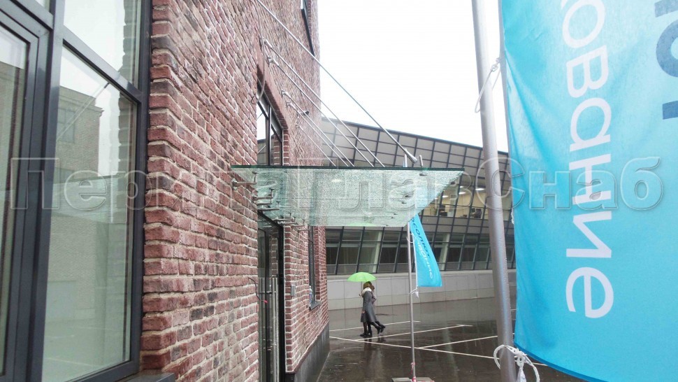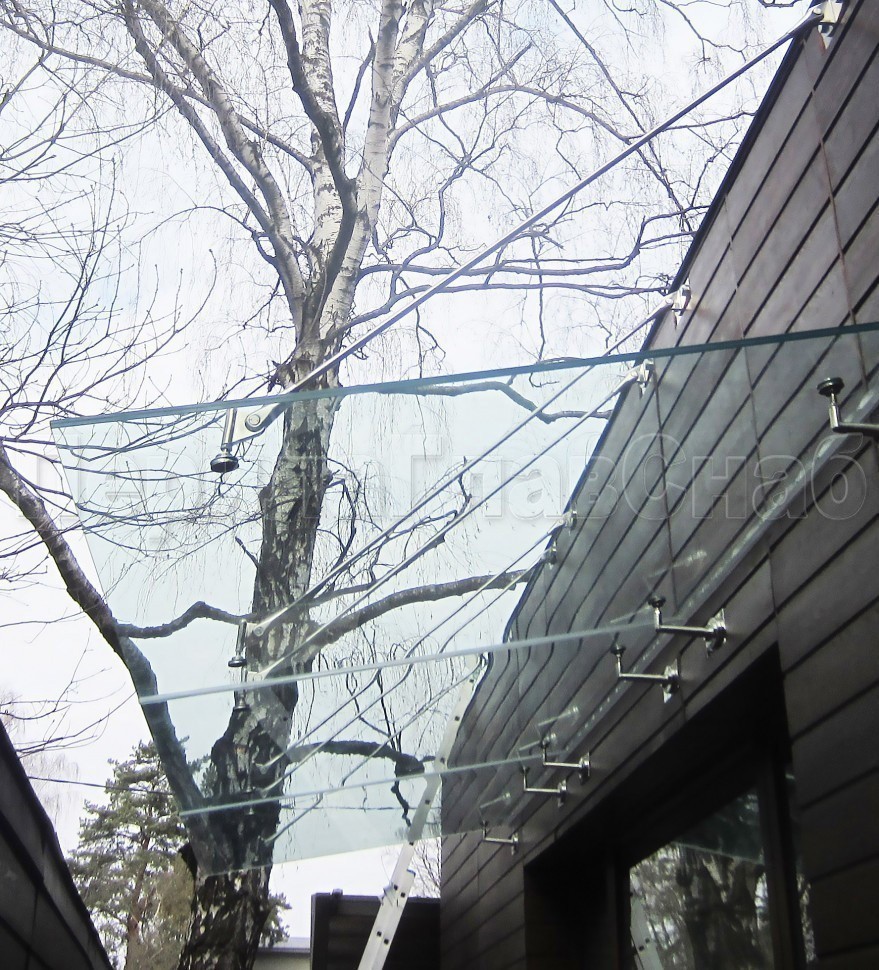 Записаться на встречу Стеклянный козырек на вантах