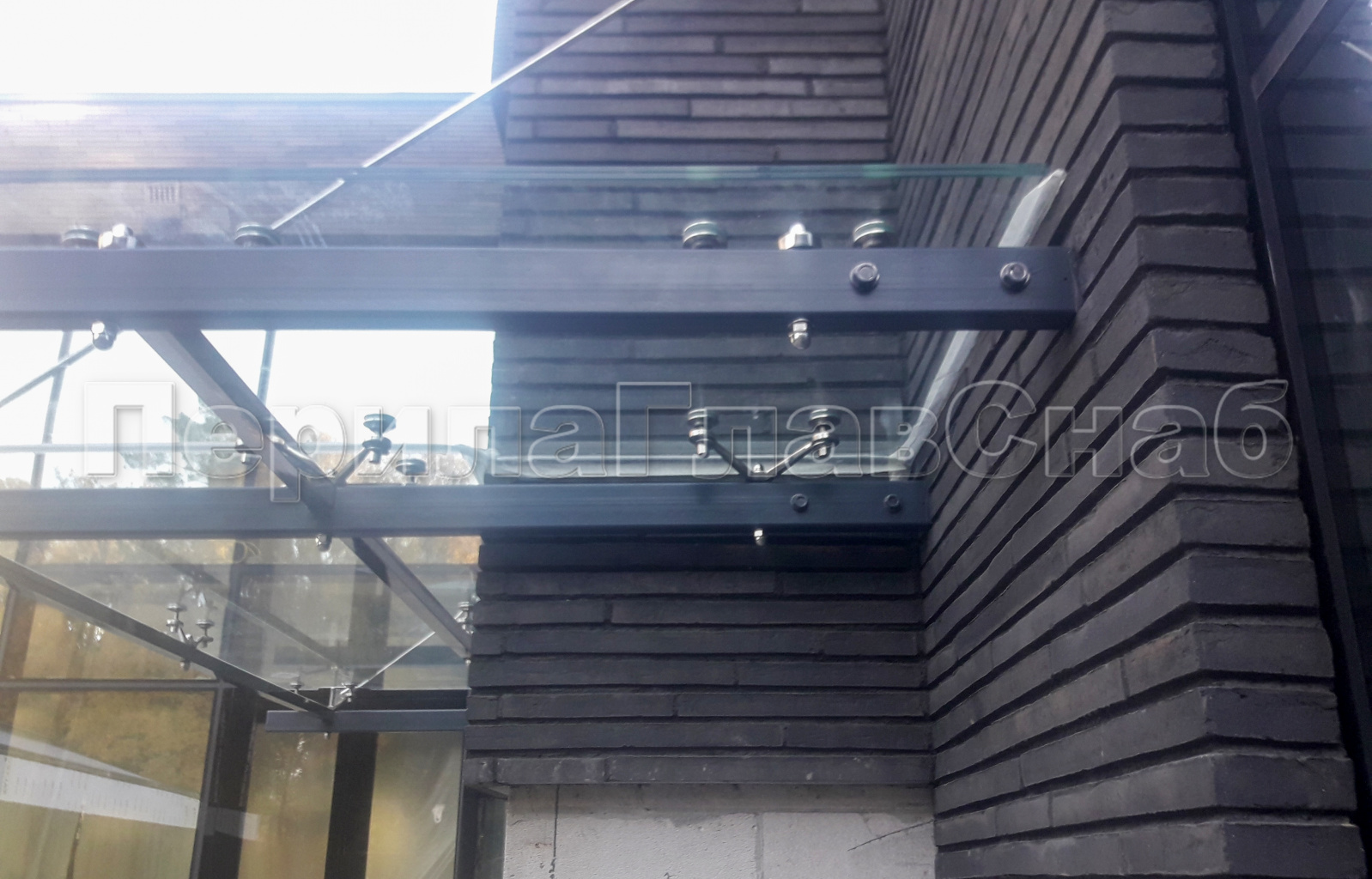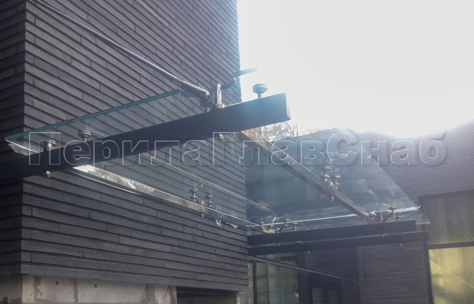 Компания “ПерилаГлавСнаб” — является лидером в области производства стеклянных конструкций — предлагает своим клиентам уникальную возможность приобретения козырьков, изготовленных из стекла и установленных на спайдерный крепеж.