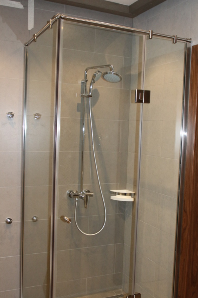 - Встраиваемые в нишу — устанавливаются между двумя стенами и создают отдельную душевую кабину.