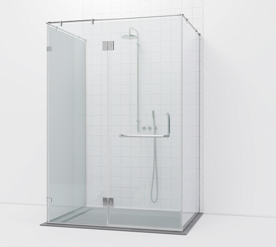 Комплект душевой перегородки возле стены с дверью и глухими стеклами.
