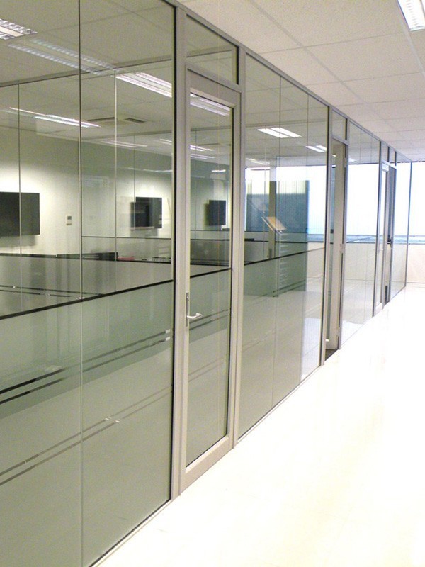 Стеклянные перегородки в офисе с закаткой пленки