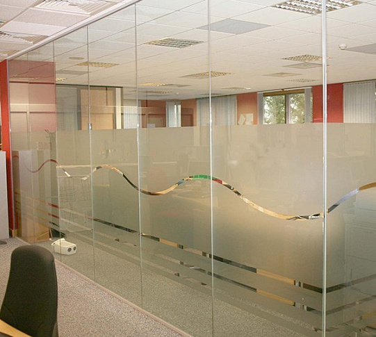 Записаться на встречу Стеклянные перегородки в офис, частично матированные